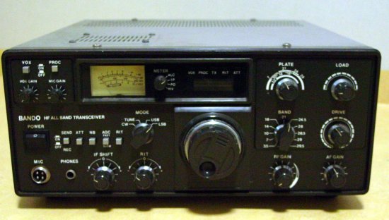 Techinic-5 HF all band transceiver by Bando Commnunications. It supports all bands except 160m. This is an early version that uses PTO in its VFO unit. I added one more 6146B. Very similar to Kenwood TS-530 |