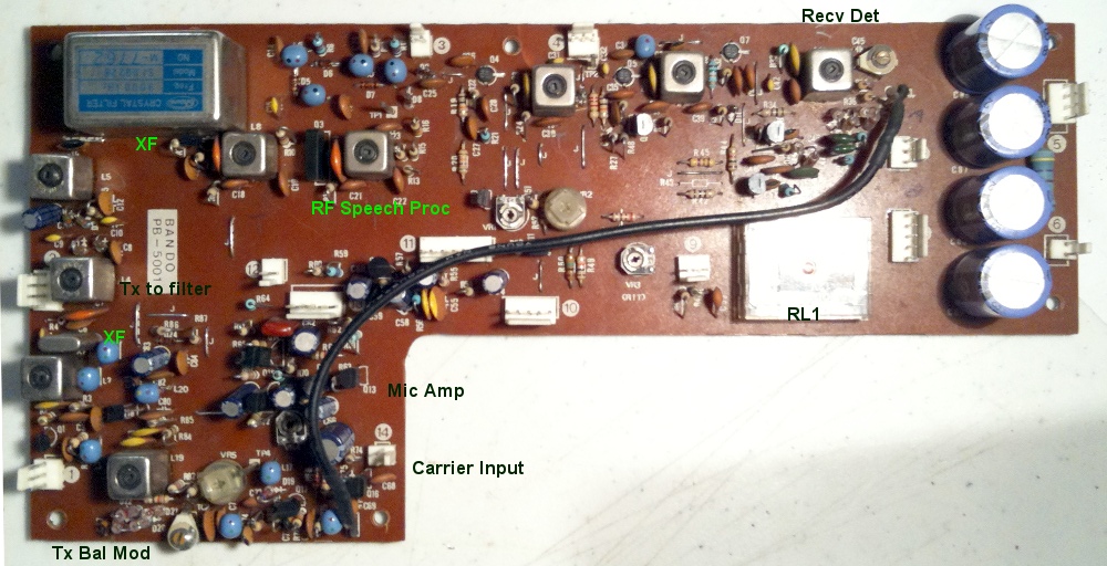 장점이라고 볼 수 있는 것은, 스피치 프로세서가 TS-530은 AF processor인데, 테크닉-5는 TS-830과 같이 IF단에 들어 있는 소위 RF speech processor입니다. 그리고 밴드 스위치에 10m에 "+0.5" 버튼이 있지 않고 로터리 스위치에 28, 28.5, 29, 29.5가 모두 들어 있습니다. 회로상의 다른 차이점은 IF가 8830 KHz가 아니라 9MHz라는 것이 가장 두드러집니다. 그렇게 하는게 필터 수급이 훨씬 쉬웠겠지요. PLL회로도 약간의 수정이 있지만 기본적 구성은 같습니다. 캐리어 + VCO 주파수로 밴드 LO 신호의 주파수가 결정되기 때문에, 캐리어 주파수가 바뀌어도 LO의 출력 주파수는 일정하게 유지됩니다. 즉 캐리어 주파수가 바뀌면 IF가 그만큼 shift되게 되고, 송수신 주파수는 변화가 없습니다. 그래서 8830에서 9000KHz로 변경하는 것도 그리 어려운 것은 아니었겠죠. 전원부에서 다른 부분 중 하나는 진공관 히터 서플라이가 12.6V가 아니고 6.3V라는 것입니다. 이것도 7V가량 나오길레 저항을 넣어 6.3으로 낮추었야 했습니다.