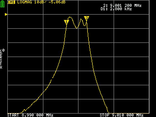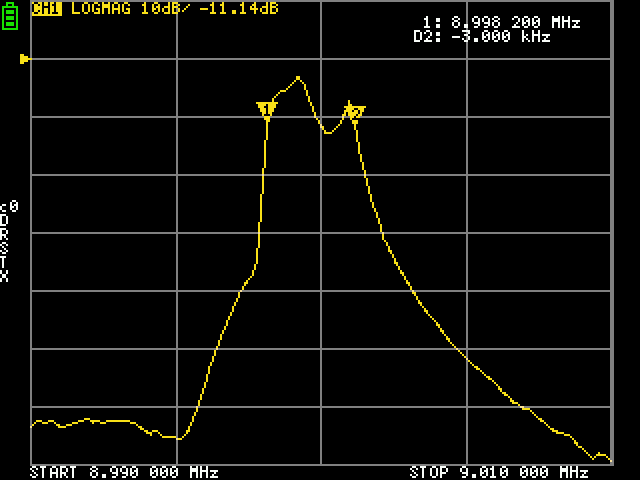 - Gonset 9MHz filter (1960s) supplied with a 8998 kHz xtal, wich is at the steeper side. The filter provides extra 30dB attenuation of the carrier. 3kc at 6dB.