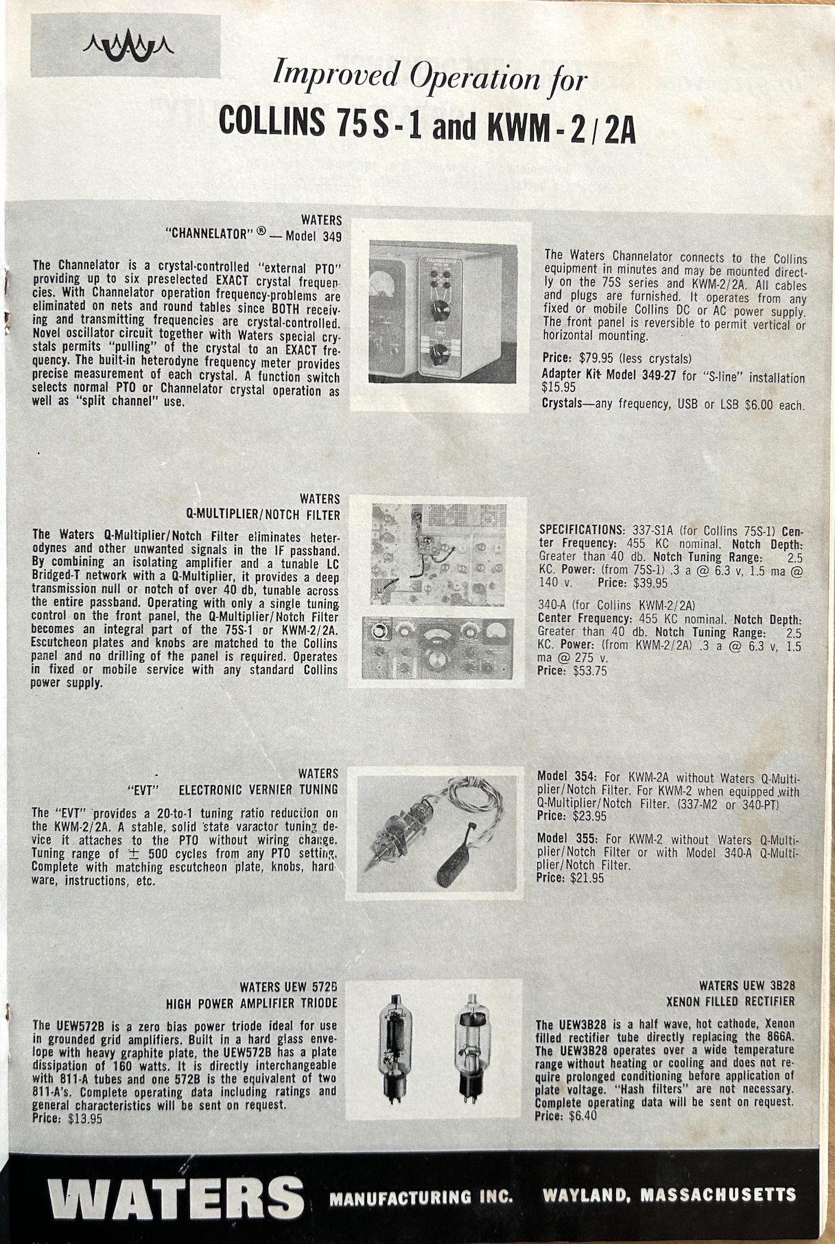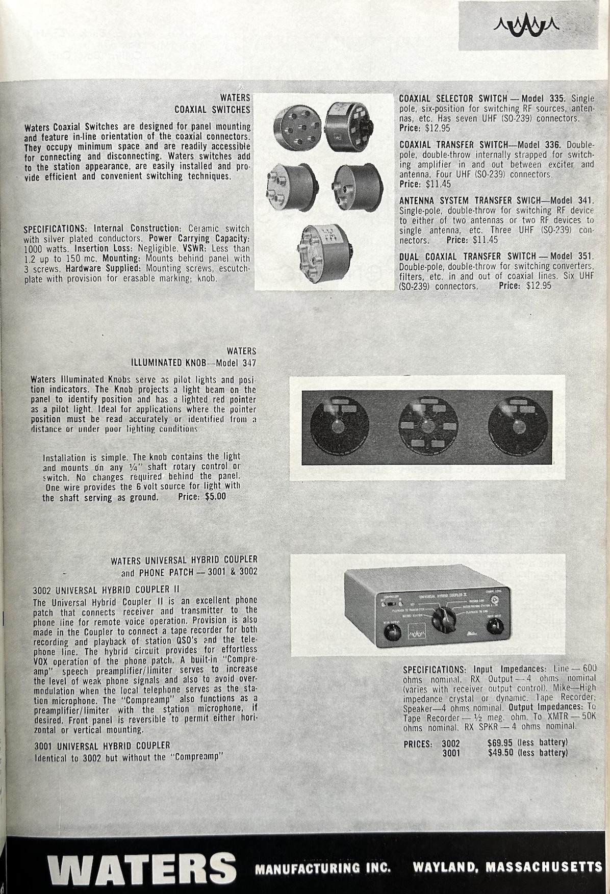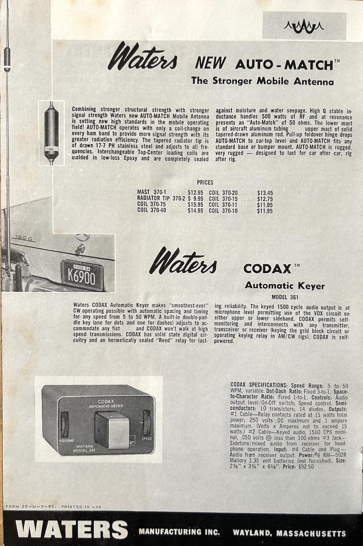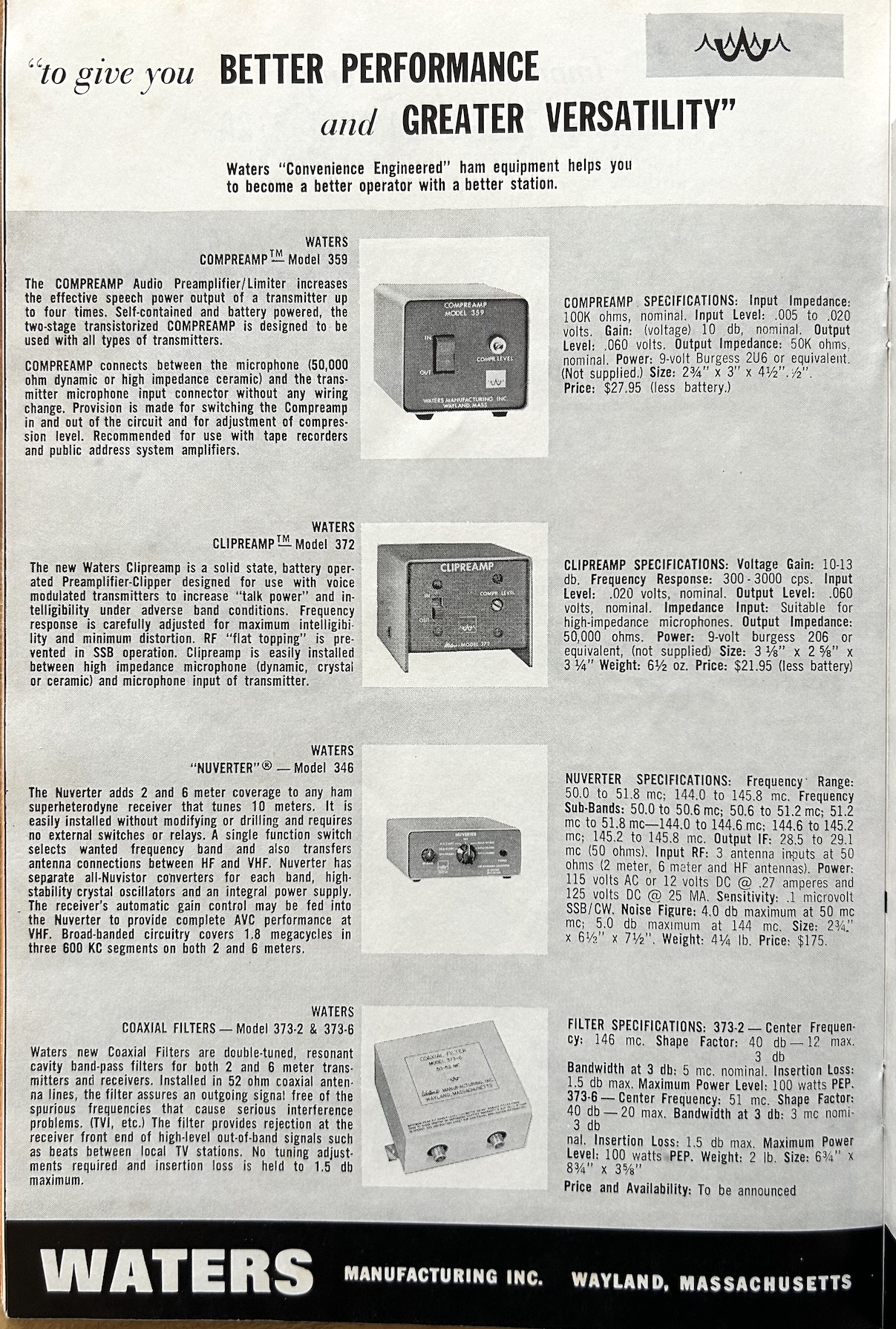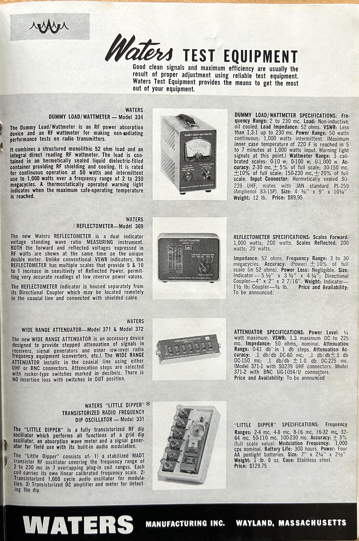 Waters Mfg. advertisement from the 73 Magazine (May 1965)