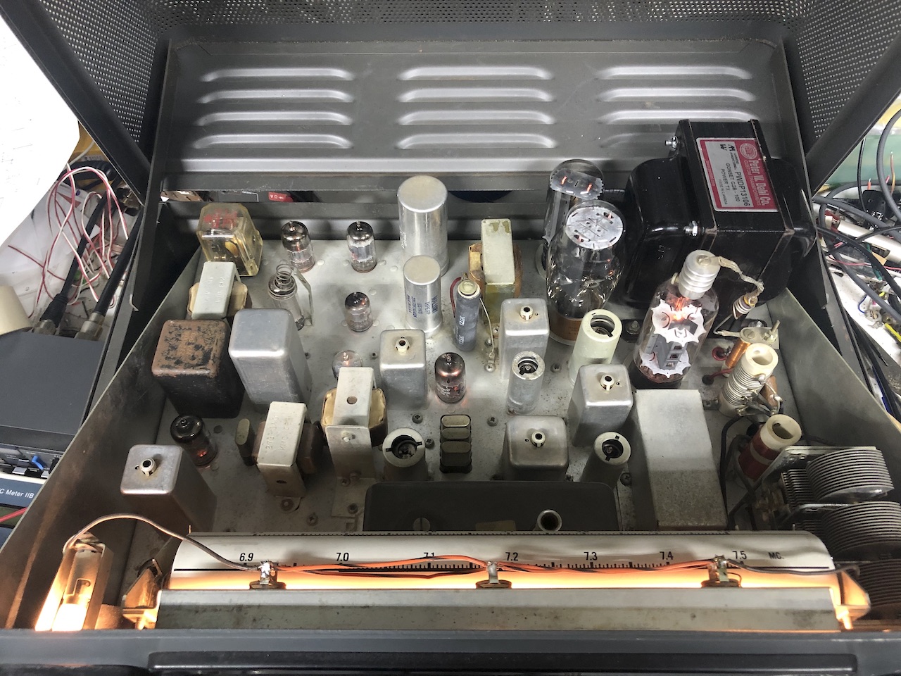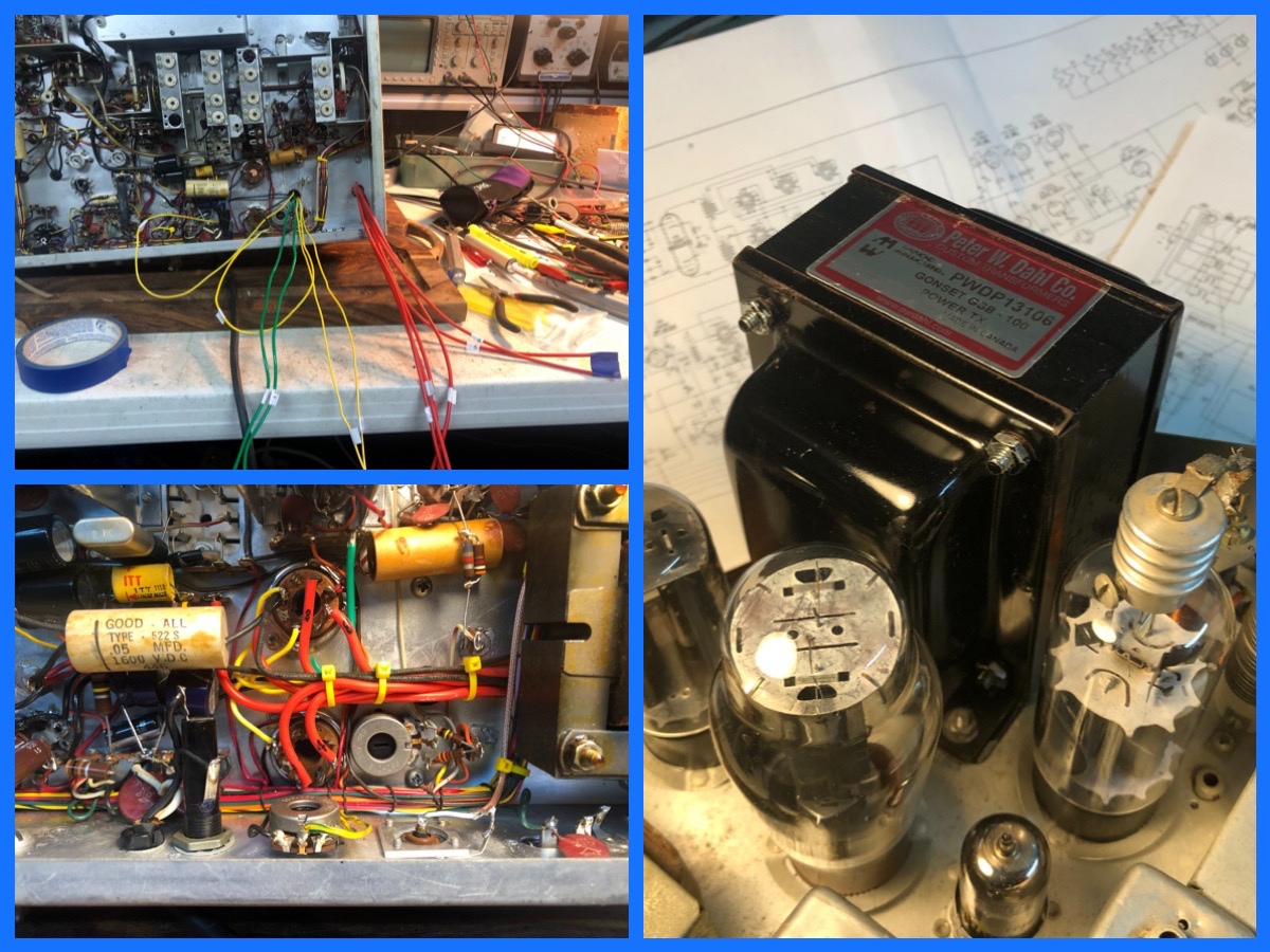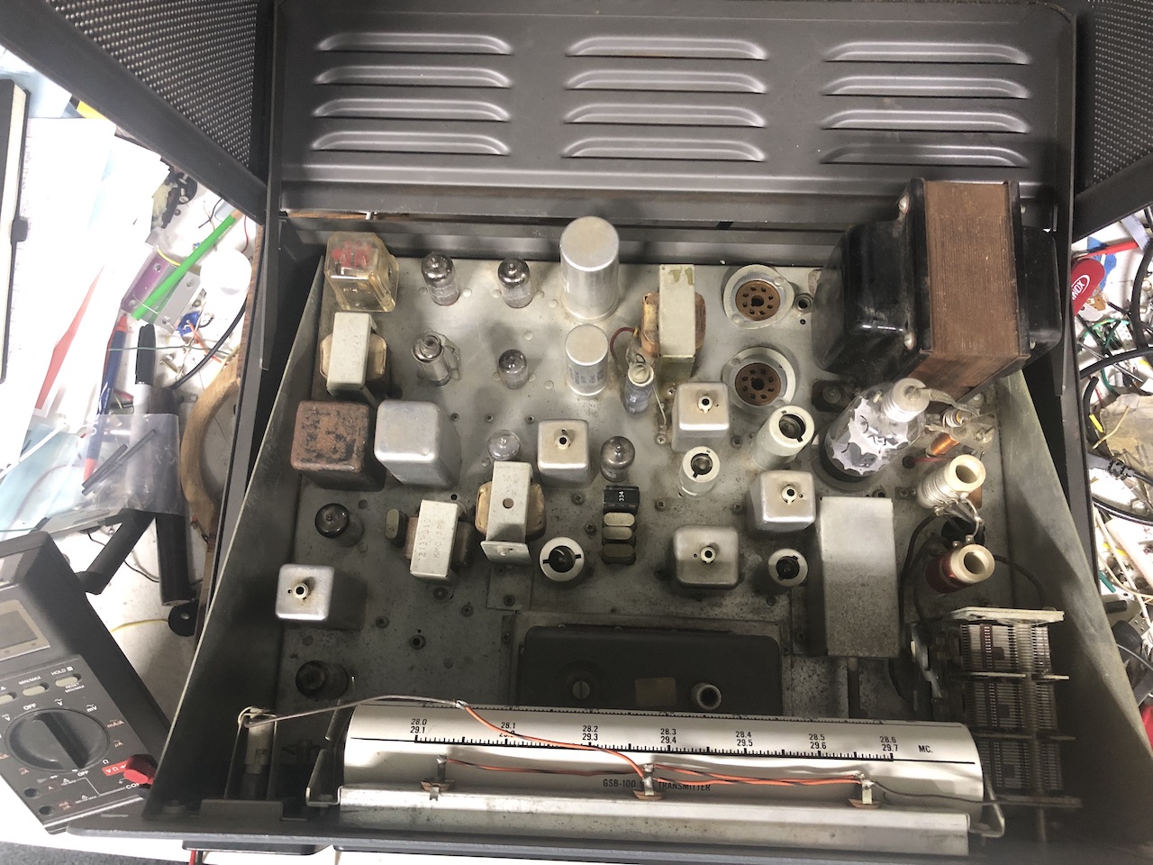 1960 Gonset SSB Station작년 여름 GSB-101 리니어 개조/수리로 시작한 곤셋 SSB 스테이션 프로젝트가 완료되었습니다. 1958-1959년에 출시된 GSB-100 PSN 방식 송신기와 GSB-101 리니어 앰프, 그리고 1960년에 나온 G-63 더블 수퍼 햄밴드 수신기로 구성이 됩니다. 수신기는 이미 가지고 있었고 가장 흔치 않은 물건입니다. 이미 수리과정을 소개한 리니어는 매우 안좋은 상태의 것으로, 트랜스부터 모든 와이어링, 밴드 스위치 수리까지 하였습니다. 그리고 이번에 드디어 GSB-100 송신기 차례가 되었습니다. 지난 12월에 전원트랜스가 완전히 망가져 버렸고 (이전 주인이 이미 켜면 퓨즈가 나간다 해서 예상하고는 있었습니다) 그래서 교체품을 Peter Dahl (피터 달)에 주문했습니다. 피터 달은 이제 해먼드(Hammond)에 합병되어 운영됩니다. 그래서 캐나다에서 만들어 4주만에 부쳐왔습니다. 트랜스 교체 후에는 자잘한 접촉 문제 해결, 진공관 몇 개 교체 후 잘 작동을 해주었습니다. 전원 트랜스 문제로 정류관 5U4GB 두개를 뽑고 테스트하는 김에 정류관부터 점검. 하나는 불량. 눈으로 봐도 플레이트가 많이 헐벗은 느낌. 여분이 없어서 HV쪽을 나중에 5R4G로 대치했습니다. 정류관을 빼고 전원을 넣으면 퓨즈가 안나가길레 트랜스가 괜찮은줄 알았습니다. 그런데 결국 몇번 해보니 트랜스 내부 쇼트가 도져서 그것도 안되더군요. 교체가 답이었습니다. ![]() 이전 주인이 개조한 것이 눈에 띄였는데, 뒤에 4개의 RCA 잭을 달고 T/R 릴레이 회로를 바꾸어 놨습니다. 수신기와 안테나 전환, 리니어 키잉이 되게 한 것입니다. 그러나 저는 GSB-101은 원래대로 100V AC로 키잉하기를 원하고, 리니어 내부에 이미 안테나 전환 릴레이가 내장되어 있으므로 모두 원래대로 복원하였습니다. 배송 도중 손상이 좀 있었는데, 노브가 하나 깨지고, 다이얼 창의 유리도 깨지고, 튜닝 샤프트는 휘고, 그 바람에 다이얼 스트링도 끊어졌습니다. 다이얼창은 아크릴판을 잘라서 대치하고, 뜯은 김에 전면 패널도 플라스틱 연마제로 한번 닦아서 정리를 했습니다. 다이얼 스트링을 다시 했는데, 밴드 드럼 스티링도 결국 끊어져서 나중에 다시 분해하여 그것도 해야 했습니다. ![]() 수리 전 샤시 하부 ![]() 트랜스는 오더를 넣었고, 그 사이에 전해 콘덴서 교체를 했습니다. B+ 300V, HV 650V 그리고 바이어스. 샤시 밑에 공간이 충분하여 터미널 러그판을 넣어 새 콘덴서들을 추가하였고, 샤시 위의 콘덴서는 그냥 모양으로 놔두었습니다. 터미널 러그판은 고용량 인두를 달구어 샤시에 직접 납땜을 해버렸습니다. 기존의 것들도 리벳을 박고 추가로 납땜을 했더군요. 그냥 리벳이나 볼트로 채결하면 그라운드 접촉 불량이 생기기도 하는데, 이 경우는 신뢰도가 높다고 생각합니다. 빨갛게 ITT라고 써있는 원통형 부품은 바이어스용 정류 다이오드입니다. 다른 필름 콘덴서들은 상태가 나쁘지 않아 놔뒀습니다. 4주 기다림 끝에 트랜스 도착! 중간에 휴일이 많이 껴 있었으니 그나마 아주 늦게 온건 아닙니다. 최악의 경우 6주까지 걸린다고 했으니까요. 교체용 트랜스는 원래 것보다 약간 얇고 마운팅 브라켓이 작아서 원래 샤시 구멍에는 맞지 않습니다. 어떤 사람들은 새로 구멍을 뚫어 달았다는데, 브라켓을 떼고 오리지날 같은 벨 커버로 바꾸어 달면 문제없이 장착이 될 것으로 보였습니다. 마침 저번에 HT-30 트랜스 교체하며 나온 커버가 있어 사용해보니 잘 될 것 같았습니다. 나중에는 조금 더 공간이 있는 오리지날 트랜스의 것을 사용했습니다. 성공적으로 장착을 하고 B+/HV 선에 레이블을 하고 맞는 길이로 자르며 결선을 했습니다. 스위치 접촉 불량을 해결하자 잘 작동해주었습니다. 부품값들을 측정해보면 모두 정상적이어서 매우 신선했습니다. 항상 많이 망가진 물건을 가져다 수리하다보니... ![]() 가끔 3.5와 14만 빼고 출력이 안나오는 일이 있어서, xtal osc의 문제겠구나 싶어 이곳 저곳 건드려 봤는데, 결국 12AV7 발진관의 문제였습니다. 발진 하다 안하다 오락가락. 12AV7은 여분이 없어서 증폭비가 약간 더 높은 12AT7으로 교체하여도 잘 작동하네요. 밑에 사진의 왼쪽은 DBM과 RF PSN 부분입니다. 두개의 볼륨으로 캐리어 발란스를 맞춥니다. 이것만으로 약 30dBc의 감쇄가 되고요, SSB 모드에는 변조 후에 xtal로 된 notch filter가 하나 더 들어가서 최종 60dBc는 됩니다. 반대 측파대 억압은 AF PSN을 조정하니, 약 35-40dB는 되는 것 같습니다. 조정 전에는 20dB 수준이었고요. 드럼 스트링 교체로 전면 패널을 다시 뜯었을 때, 마이크 코넥터도 1핀에서 드레이크/콜린스 형으로 교체했습니다. PTT라인은 기존의 리모트 키잉단자를 단속하도록 작은 릴레이를 추가하고 콘트롤 하게 했습니다. 릴레이 전원은 히터를 반파장 배압정류하였습니다. 기존의 리모트 키잉 라인은 두 단자 모두 그라운드가 아니므로 바로 PTT에 적용이 안되어 릴레이를 추가한 것입니다. 그리하여 모두 완성이 되었습니다. 3대를 모아 놓으니 그럴듯 합니다. ![]() 다음은 작동시키는 유튜브 비디오입니다. 송신기 튜닝, 송수 제로비트, 리니어 튜닝, 송신. (C) 2025 K9SUL |