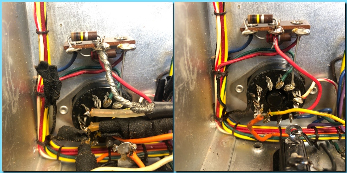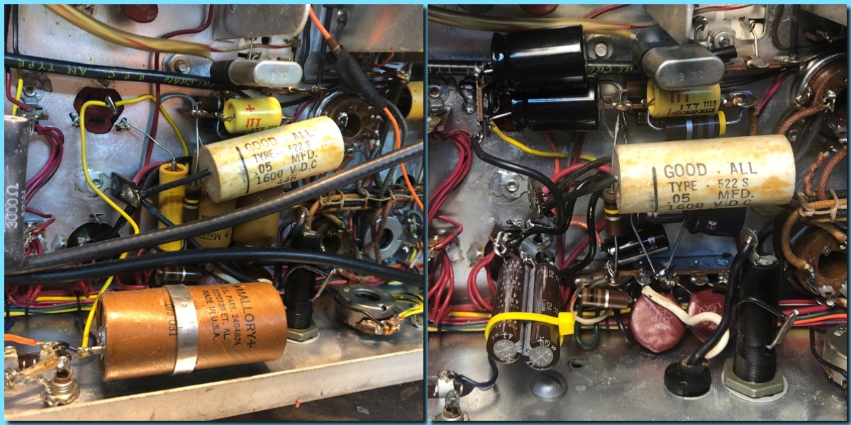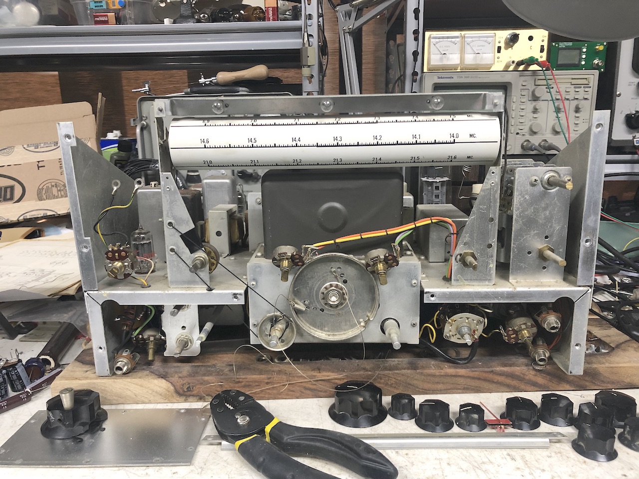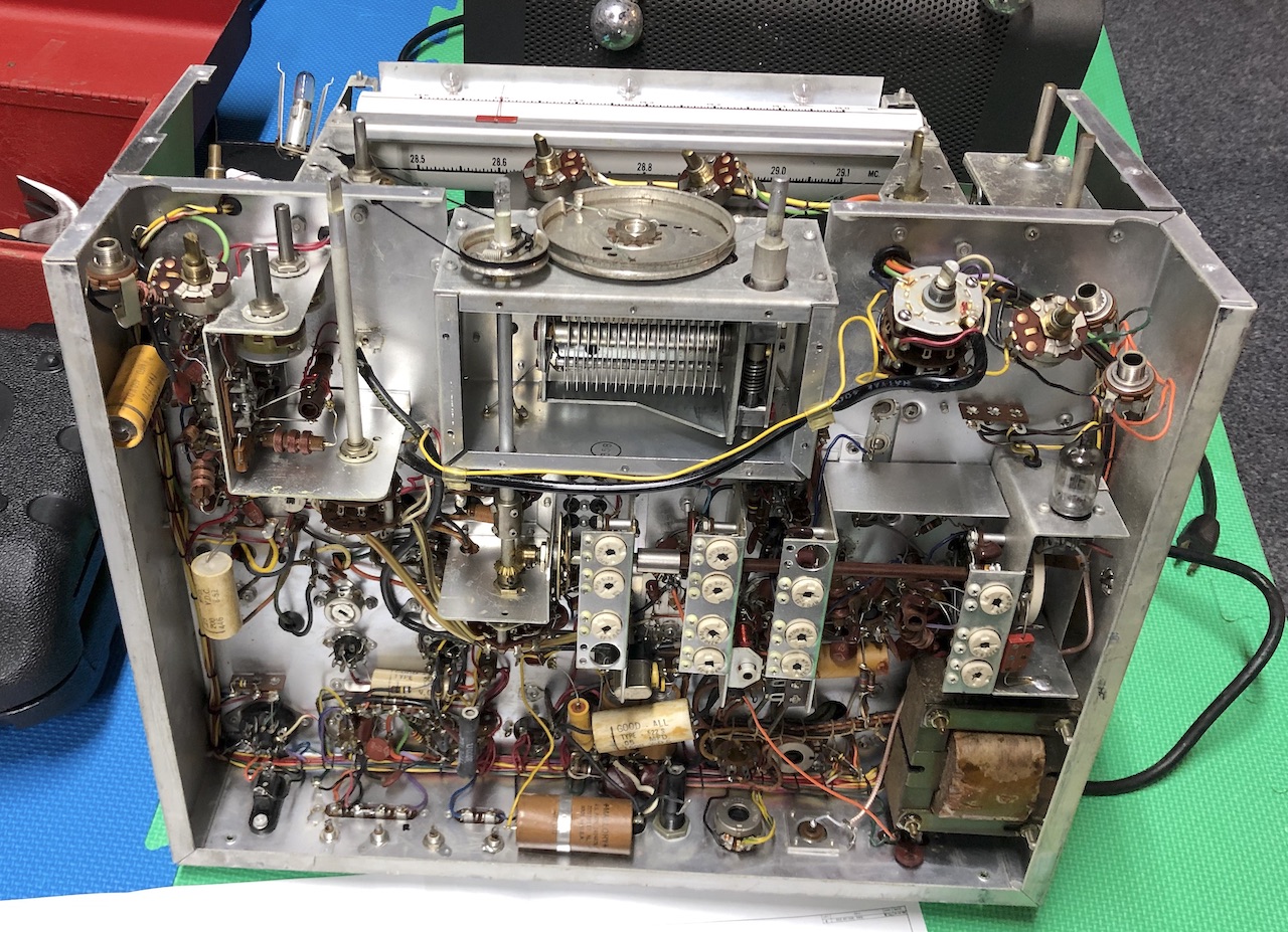 1960 Gonset SSB Station작년 여름 GSB-101 리니어 개조/수리로 시작한 곤셋 SSB 스테이션 프로젝트가 완료되었습니다. 1958-1959년에 출시된 GSB-100 PSN 방식 송신기와 GSB-101 리니어 앰프, 그리고 1960년에 나온 G-63 더블 수퍼 햄밴드 수신기로 구성이 됩니다. 수신기는 이미 가지고 있었고 가장 흔치 않은 물건입니다. 이미 수리과정을 소개한 리니어는 매우 안좋은 상태의 것으로, 트랜스부터 모든 와이어링, 밴드 스위치 수리까지 하였습니다. 그리고 이번에 드디어 GSB-100 송신기 차례가 되었습니다. 지난 12월에 전원트랜스가 완전히 망가져 버렸고 (이전 주인이 이미 켜면 퓨즈가 나간다 해서 예상하고는 있었습니다) 그래서 교체품을 Peter Dahl (피터 달)에 주문했습니다. 피터 달은 이제 해먼드(Hammond)에 합병되어 운영됩니다. 그래서 캐나다에서 만들어 4주만에 부쳐왔습니다. 트랜스 교체 후에는 자잘한 접촉 문제 해결, 진공관 몇 개 교체 후 잘 작동을 해주었습니다. 전원 트랜스 문제로 정류관 5U4GB 두개를 뽑고 테스트하는 김에 정류관부터 점검. 하나는 불량. 눈으로 봐도 플레이트가 많이 헐벗은 느낌. 여분이 없어서 HV쪽을 나중에 5R4G로 대치했습니다. 정류관을 빼고 전원을 넣으면 퓨즈가 안나가길레 트랜스가 괜찮은줄 알았습니다. 그런데 결국 몇번 해보니 트랜스 내부 쇼트가 도져서 그것도 안되더군요. 교체가 답이었습니다. ![]() 이전 주인이 개조한 것이 눈에 띄였는데, 뒤에 4개의 RCA 잭을 달고 T/R 릴레이 회로를 바꾸어 놨습니다. 수신기와 안테나 전환, 리니어 키잉이 되게 한 것입니다. 그러나 저는 GSB-101은 원래대로 100V AC로 키잉하기를 원하고, 리니어 내부에 이미 안테나 전환 릴레이가 내장되어 있으므로 모두 원래대로 복원하였습니다. 배송 도중 손상이 좀 있었는데, 노브가 하나 깨지고, 다이얼 창의 유리도 깨지고, 튜닝 샤프트는 휘고, 그 바람에 다이얼 스트링도 끊어졌습니다. 다이얼창은 아크릴판을 잘라서 대치하고, 뜯은 김에 전면 패널도 플라스틱 연마제로 한번 닦아서 정리를 했습니다. 다이얼 스트링을 다시 했는데, 밴드 드럼 스티링도 결국 끊어져서 나중에 다시 분해하여 그것도 해야 했습니다. ![]() 수리 전 샤시 하부 ![]() 트랜스는 오더를 넣었고, 그 사이에 전해 콘덴서 교체를 했습니다. B+ 300V, HV 650V 그리고 바이어스. 샤시 밑에 공간이 충분하여 터미널 러그판을 넣어 새 콘덴서들을 추가하였고, 샤시 위의 콘덴서는 그냥 모양으로 놔두었습니다. 터미널 러그판은 고용량 인두를 달구어 샤시에 직접 납땜을 해버렸습니다. 기존의 것들도 리벳을 박고 추가로 납땜을 했더군요. 그냥 리벳이나 볼트로 채결하면 그라운드 접촉 불량이 생기기도 하는데, 이 경우는 신뢰도가 높다고 생각합니다. 빨갛게 ITT라고 써있는 원통형 부품은 바이어스용 정류 다이오드입니다. 다른 필름 콘덴서들은 상태가 나쁘지 않아 놔뒀습니다. 4주 기다림 끝에 트랜스 도착! 중간에 휴일이 많이 껴 있었으니 그나마 아주 늦게 온건 아닙니다. 최악의 경우 6주까지 걸린다고 했으니까요. 교체용 트랜스는 원래 것보다 약간 얇고 마운팅 브라켓이 작아서 원래 샤시 구멍에는 맞지 않습니다. 어떤 사람들은 새로 구멍을 뚫어 달았다는데, 브라켓을 떼고 오리지날 같은 벨 커버로 바꾸어 달면 문제없이 장착이 될 것으로 보였습니다. 마침 저번에 HT-30 트랜스 교체하며 나온 커버가 있어 사용해보니 잘 될 것 같았습니다. 나중에는 조금 더 공간이 있는 오리지날 트랜스의 것을 사용했습니다. 성공적으로 장착을 하고 B+/HV 선에 레이블을 하고 맞는 길이로 자르며 결선을 했습니다. 스위치 접촉 불량을 해결하자 잘 작동해주었습니다. 부품값들을 측정해보면 모두 정상적이어서 매우 신선했습니다. 항상 많이 망가진 물건을 가져다 수리하다보니... ![]() 가끔 3.5와 14만 빼고 출력이 안나오는 일이 있어서, xtal osc의 문제겠구나 싶어 이곳 저곳 건드려 봤는데, 결국 12AV7 발진관의 문제였습니다. 발진 하다 안하다 오락가락. 12AV7은 여분이 없어서 증폭비가 약간 더 높은 12AT7으로 교체하여도 잘 작동하네요. 밑에 사진의 왼쪽은 DBM과 RF PSN 부분입니다. 두개의 볼륨으로 캐리어 발란스를 맞춥니다. 이것만으로 약 30dBc의 감쇄가 되고요, SSB 모드에는 변조 후에 xtal로 된 notch filter가 하나 더 들어가서 최종 60dBc는 됩니다. 반대 측파대 억압은 AF PSN을 조정하니, 약 35-40dB는 되는 것 같습니다. 조정 전에는 20dB 수준이었고요. 드럼 스트링 교체로 전면 패널을 다시 뜯었을 때, 마이크 코넥터도 1핀에서 드레이크/콜린스 형으로 교체했습니다. PTT라인은 기존의 리모트 키잉단자를 단속하도록 작은 릴레이를 추가하고 콘트롤 하게 했습니다. 릴레이 전원은 히터를 반파장 배압정류하였습니다. 기존의 리모트 키잉 라인은 두 단자 모두 그라운드가 아니므로 바로 PTT에 적용이 안되어 릴레이를 추가한 것입니다. 그리하여 모두 완성이 되었습니다. 3대를 모아 놓으니 그럴듯 합니다. ![]() 다음은 작동시키는 유튜브 비디오입니다. 송신기 튜닝, 송수 제로비트, 리니어 튜닝, 송신. (C) 2025 K9SUL |