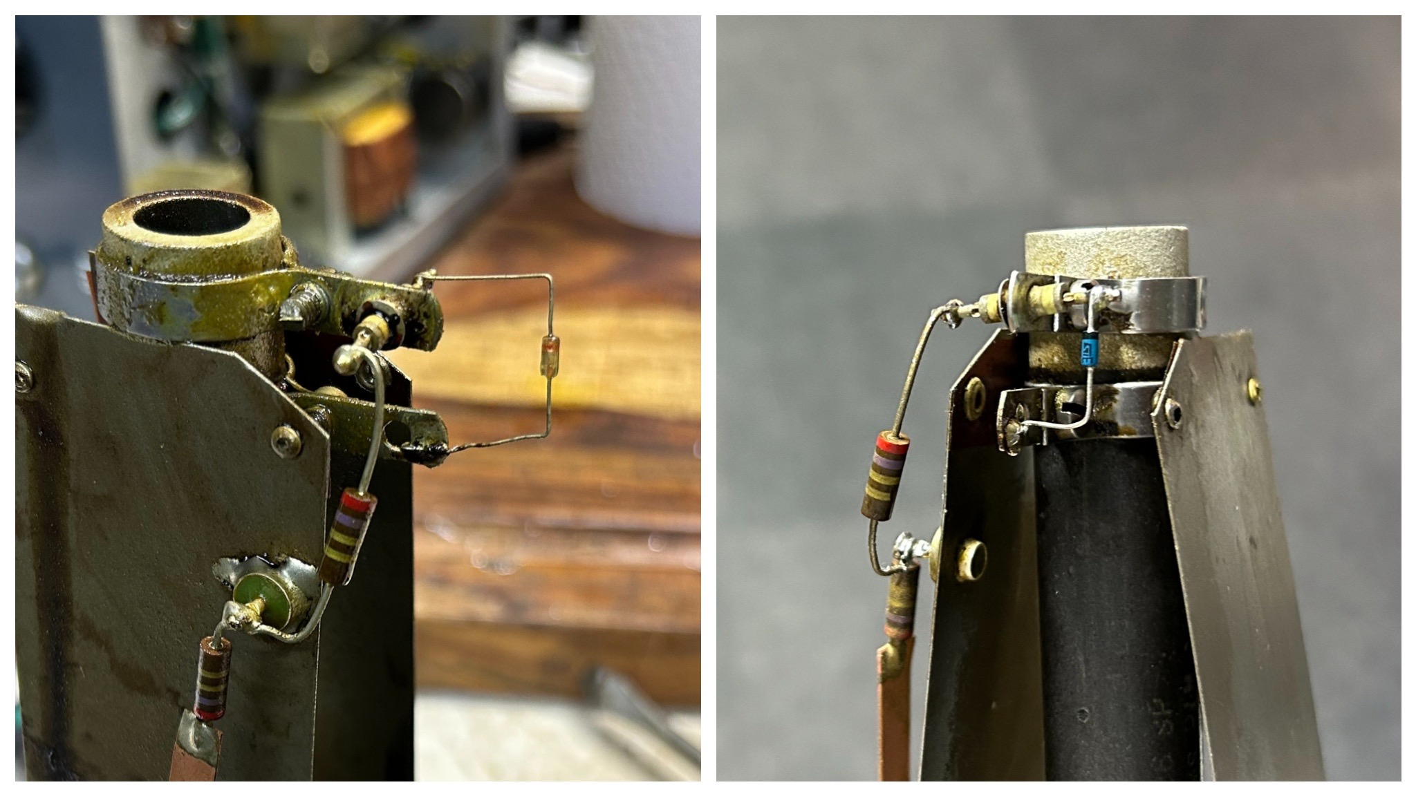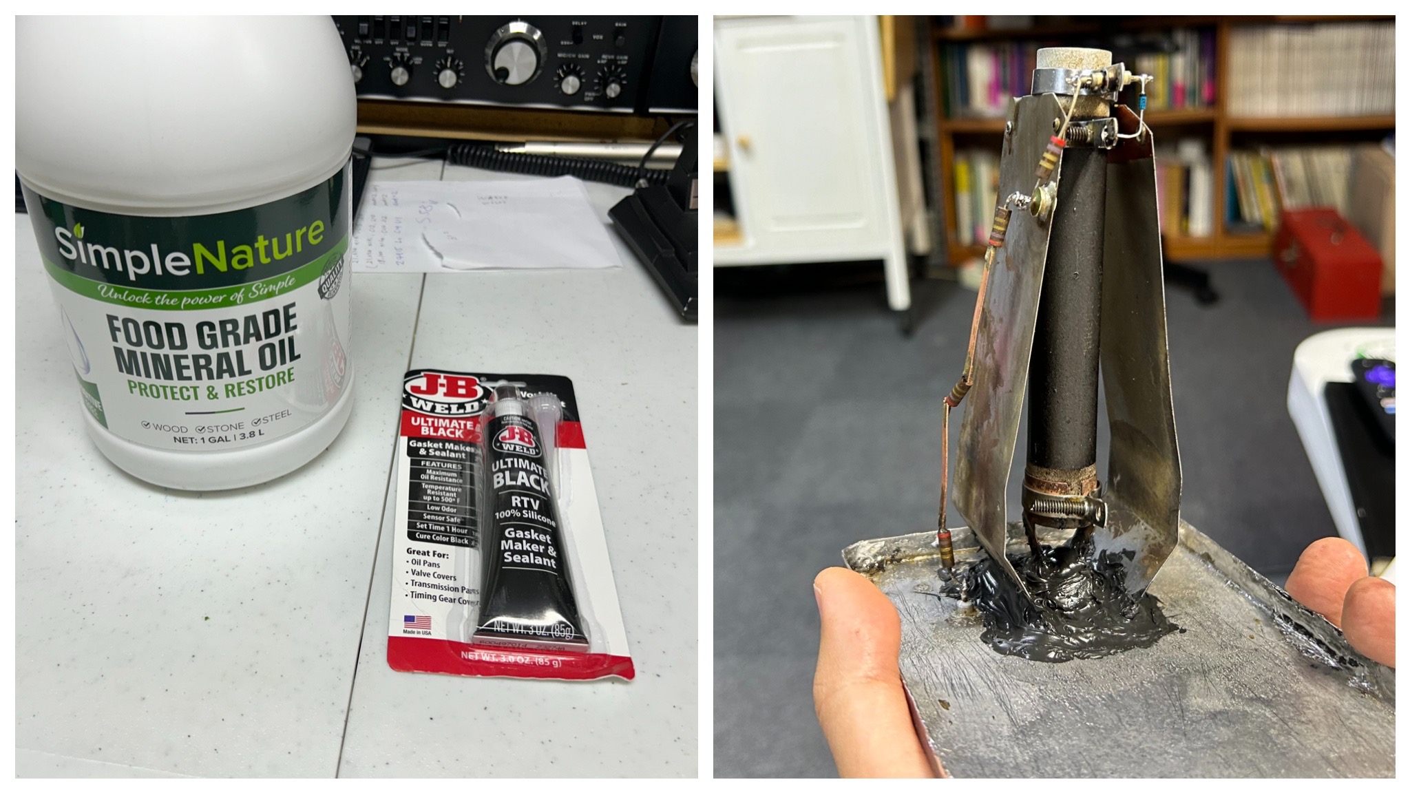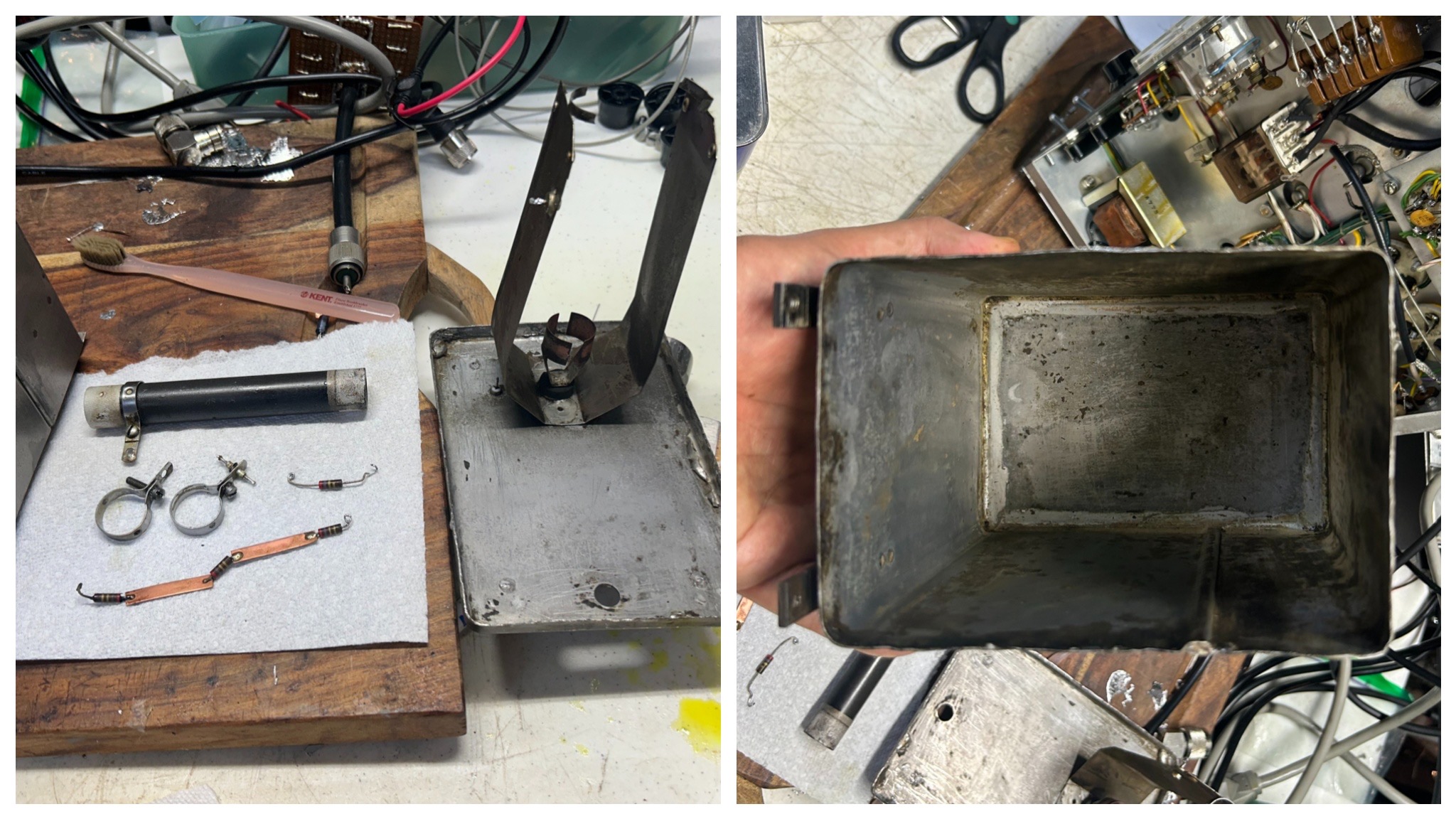 Waters 384 Dummy Load Restoration![]() 2011년 여름에 가까운 동네의 작은 햄페스트에서 입수한 Waters사의 Model 384 Dummy Load. 1.5kW로 송출시 4분, 50W 연속은 시간 제한 없다고 합니다. 사각 깡통 내부에 채워진 오일이 달아올라 섭씨 105도 정도가 되면 전면의 경고등이 켜집니다. 처음 입수했을 때도 오일이 조금씩 새고 있었는데, 이전 주인이 정해진 온도를 넘어 혹사를 시켰을 가능성이 큽니다. 약간씩 샜지만 그래도 쓸만했는데, 얼마전 약 200W의 종단 출력 실험에 사용했더니 다음 날 책상에 30cm 지름으로 새어나와 퍼져나와 있더군요. 그래서 이번에 힘을 써서 고쳐보자 마음을 먹게 되었습니다. ![]() 일단 캐비넷에서 꺼낸 후 앞판과 뒷판을 떼어내어 직육면체 깡통이 나오면, 플러그와 납땜으로 막아논 오일 주입구를 다시 엽니다. 100와트 인두를 동원하여 간단하게 열었습니다. 그 다음 내부의 트랜스포머 오일을 비워냅니다. 그 동안 얼마나 새어 나왔을까 알 수 없지만, 용적을 보면 2 리터를 약간 넘는 양이 적정량입니다. ![]() 그 다음은 SO-239 코넥터가 붙어 있는 뒷면 뚜껑을 떼어냅니다. 모서리가 삥 둘러 납땜이 되어 있는데, 이건 떼어내는데 좀 고생을 했습니다. 성공적으로 열어보니, 역시 과거에 혹사당하여 오일이 타고 슬러지가 두껍게 껴 있었습니다. 금속판에 이런게 두껍게 붙어 있다면 열전달이 안되어 냉각 시간도 길어지겠죠. 내부에는 입력 신호에 대하여 저항 분압 회로가 로드 저항 자체에 있고 (53옴 - 5.5옴), 거기에 크리스탈 다이오드가 포함된 측정용 회로가 있습니다. 약 1/10의 전압을 검출하는 것입니다. 이 깡통 더미로드는 원래 334라는 모델을 위해 만들어졌는데, 거기에는 파워 미터가 달려있으며 1kW까지 측정이 가능합니다. 회로를 비교하니 그것과 동일합니다. 다만, 그 설명서에는 1kW를 넘으면 다이오드가 망가지므로 넘지 말라고 되어 있습니다. 미터가 없는 이 384 더미로드는 내부 검출 회로는 사용되지 않고 1.5kW 까지 사용하도록 되어 있는데, 그래서인지 다이오드는 망가져 있었습니다 (쇼트). 다른 직렬 저항들은 변화없이 값이 정확했습니다. ![]() 최대한 긁어낸 후 남은 것은 휘발유를 부어 청소를 했습니다. 깨끗하게 청소한 모습입니다. ![]() 청소 후 재조립하면서 다이오드를 BAT46로 교체했습니다. 교체 전과 비교해 보았습니다. ![]() 며칠 후 주문한 미네랄 오일 1갤런과 고온용 실리콘이 도착했습니다. 고온 실리콘은 섭씨 250도 까지 버틴다고 하고 오일에 내성이 강하다고 하여 선택했습니다. 코넥터의 씰이 망가져서 새고 있었으므로, 주변을 깨끗하게 닦아 내고서 납땜으로 접합할 수 있는 부분은 최대한 납땜으로 새지 않게 처리했습니다. 그리고서 코넥터 주변에 실리콘을 넉넉하게 도포하였습니다. ![]() 24시간 경과 후 드디어 뚜껑을 덮고 납땜으로 다시 봉합니다. 가장 재미있는 작업입니다. 몇 번이나 확인과 보완을 한 후 오일을 주입합니다. 구멍이 작아서 음료수 캔을 잘라 구멍에 맞는 미니 깔때기를 만들었습니다. 거기에 큰 깔때기를 대고 오일을 천천히 살살 넘치지 않게 부어 넣습니다. 물론 미리 적정량을 측정하여 덜어 놓았습니다. ![]() 이날 저녁 리니어 앰프를 통해 500W를 더미로드에 송출하며 실험을 했습니다. 중간에 잠깐씩 쉬어가며 약 20분을 송신하니 램프가 켜집니다. 연속 송신이라면 약 8-9분 만에 켜지지 않았을까 합니다. 메뉴얼의 그래프와 얼추 맞습니다. 30분 정도가 지나자 냉각이 되어 불이 꺼졌습니다. 원래는 110V짜리 전구가 들어 있는데, 이참에 LED로 교체하고 110V 대신 AA 배터리 네개로 6V DC를 넣도록 개조했습니다. 아직 까지는 전혀 오일이 새는 기미가 안보입니다. 부디 이 상태로 오래 오래 가길 바랍니다. (C) 2025 K9SUL |